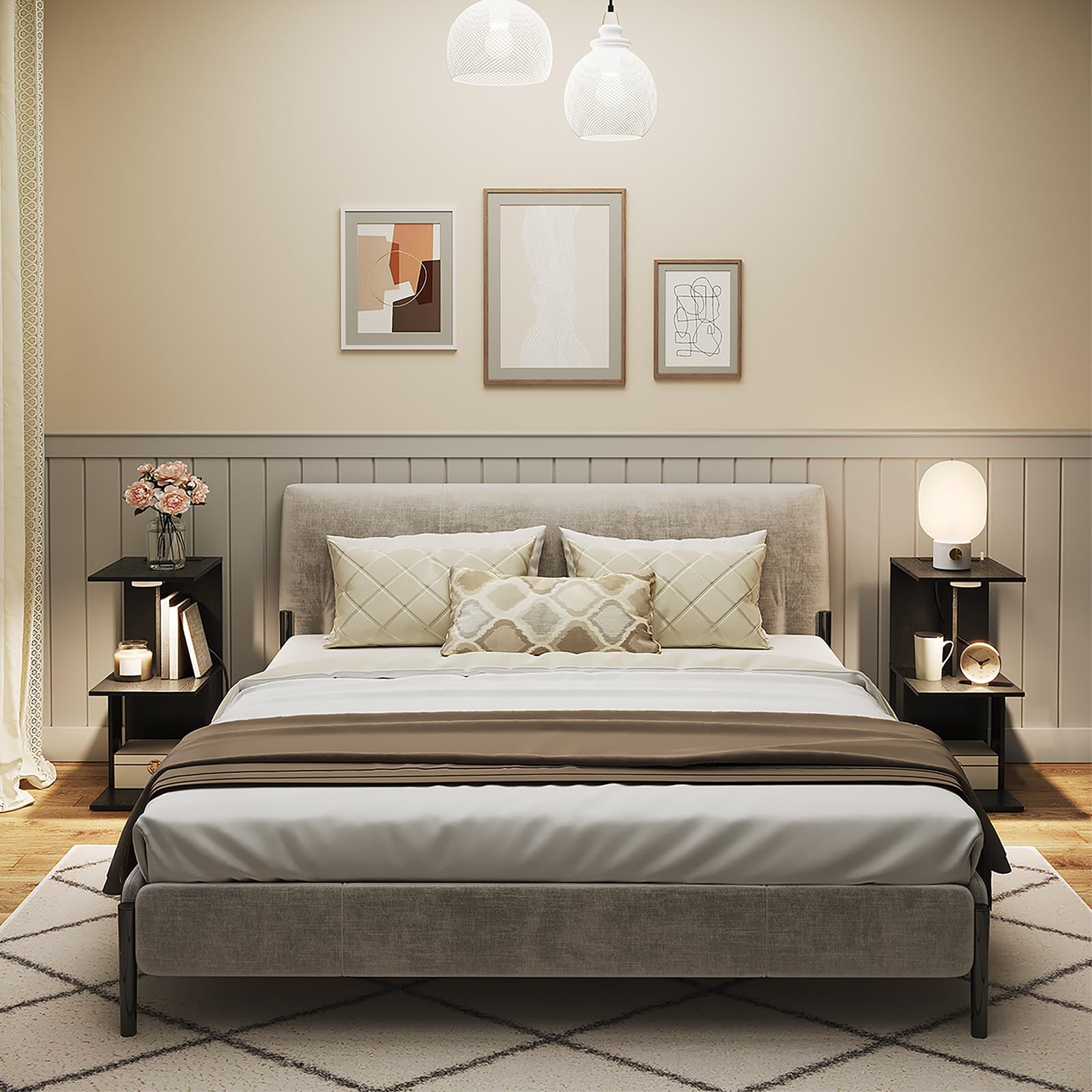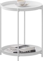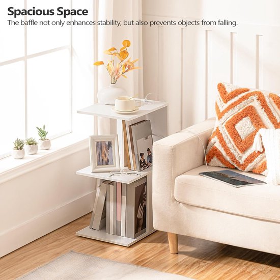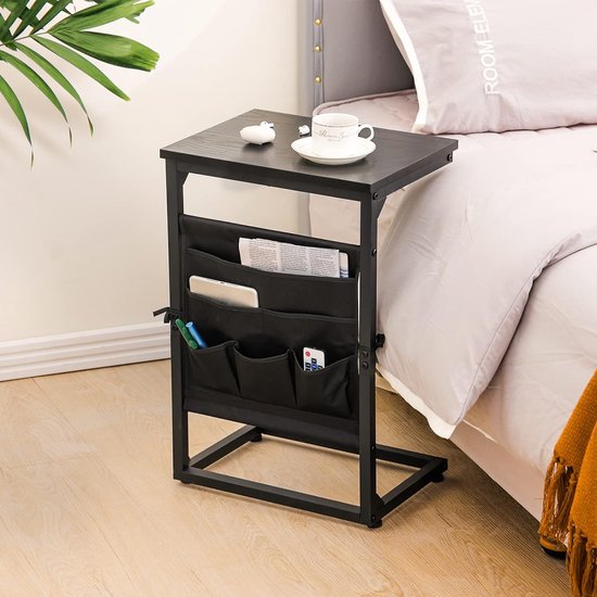 MAHANCRIS Salontafel Met Laadstation, C-Vormige Bijzettafel Met Oplaadbaar LED-sensorlicht, Bankbijzettafel Met Planken, Voor Slaapkamer, Woonkamer