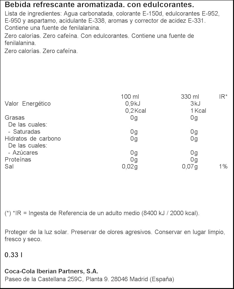 Coca Cola Zero Sans Caféine - Pack 33cl X 24 Bouteilles – Bottle Of Italy