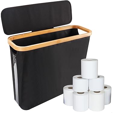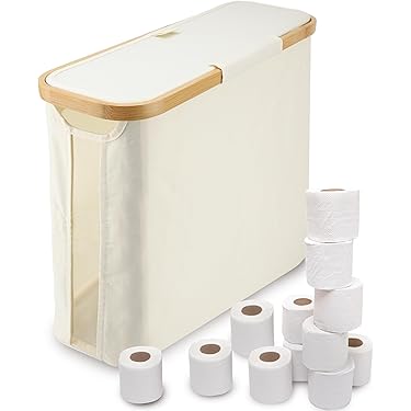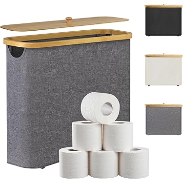 BigKing Opbergmand Voor Toiletpapier, 44 X 15 Cm, Opbergmand Van Oxford-stof, Bamboedeksel, 12 Papierrollen Voor Het Opbergen Van Badkamer En